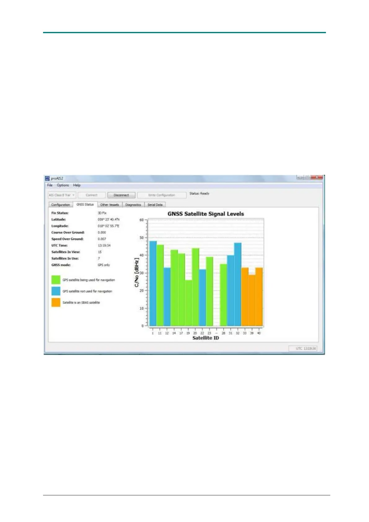 Figure 16 AIS CTRX GRAPHENE GNSS Status field showing satellites being used as well as not being used plus