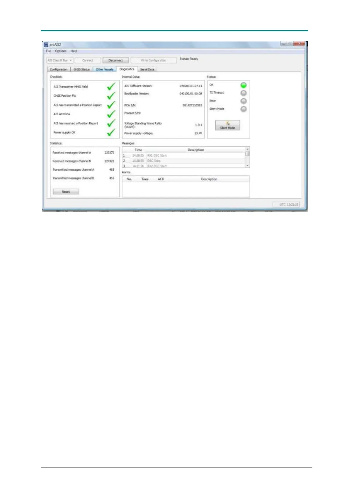 Figure 18 AIS CTRX GRAPHENE Diagnostics field provides good information about the transponder's status and the