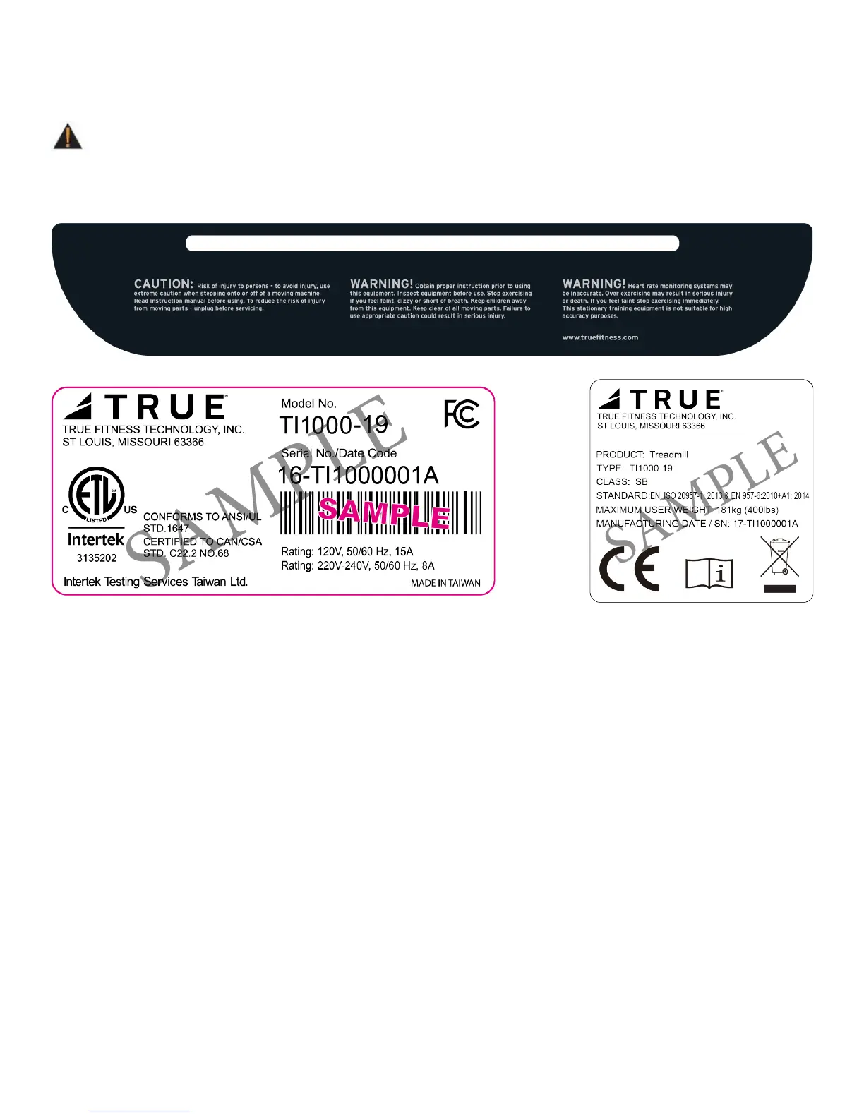 To replace any worn or missing decals contact TRUE FITNESS by visiting www.truetness.com or contact customer