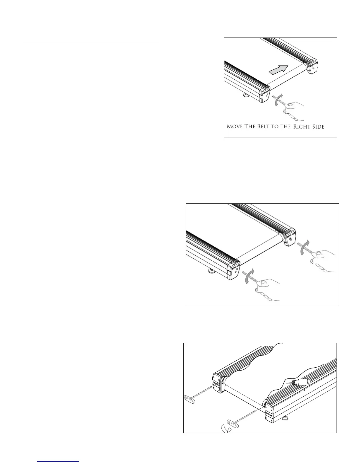 Note: Aer the running belt alignment is complete, conrm the Allen wrench has been removed from the adjustment bolt