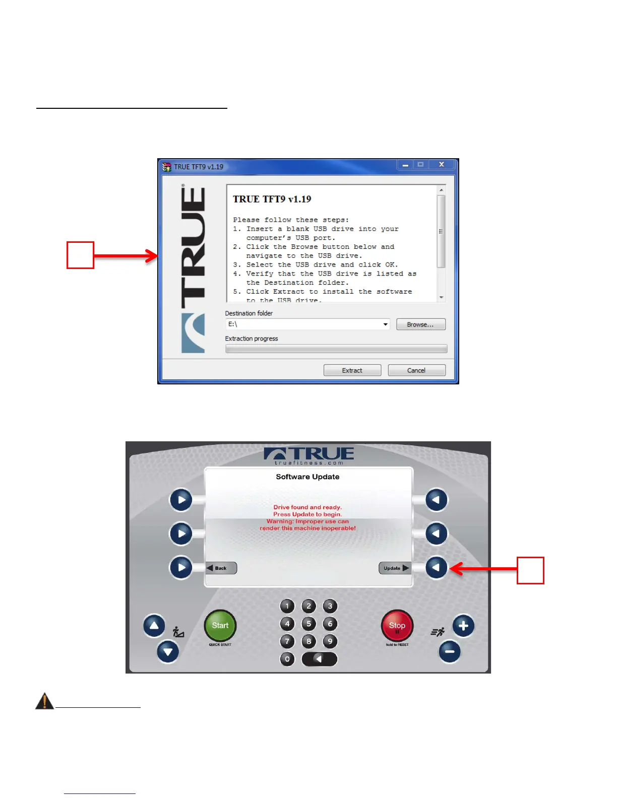 the console software, download the update program (A) from truefitness.com and load the software to a blank USB drive