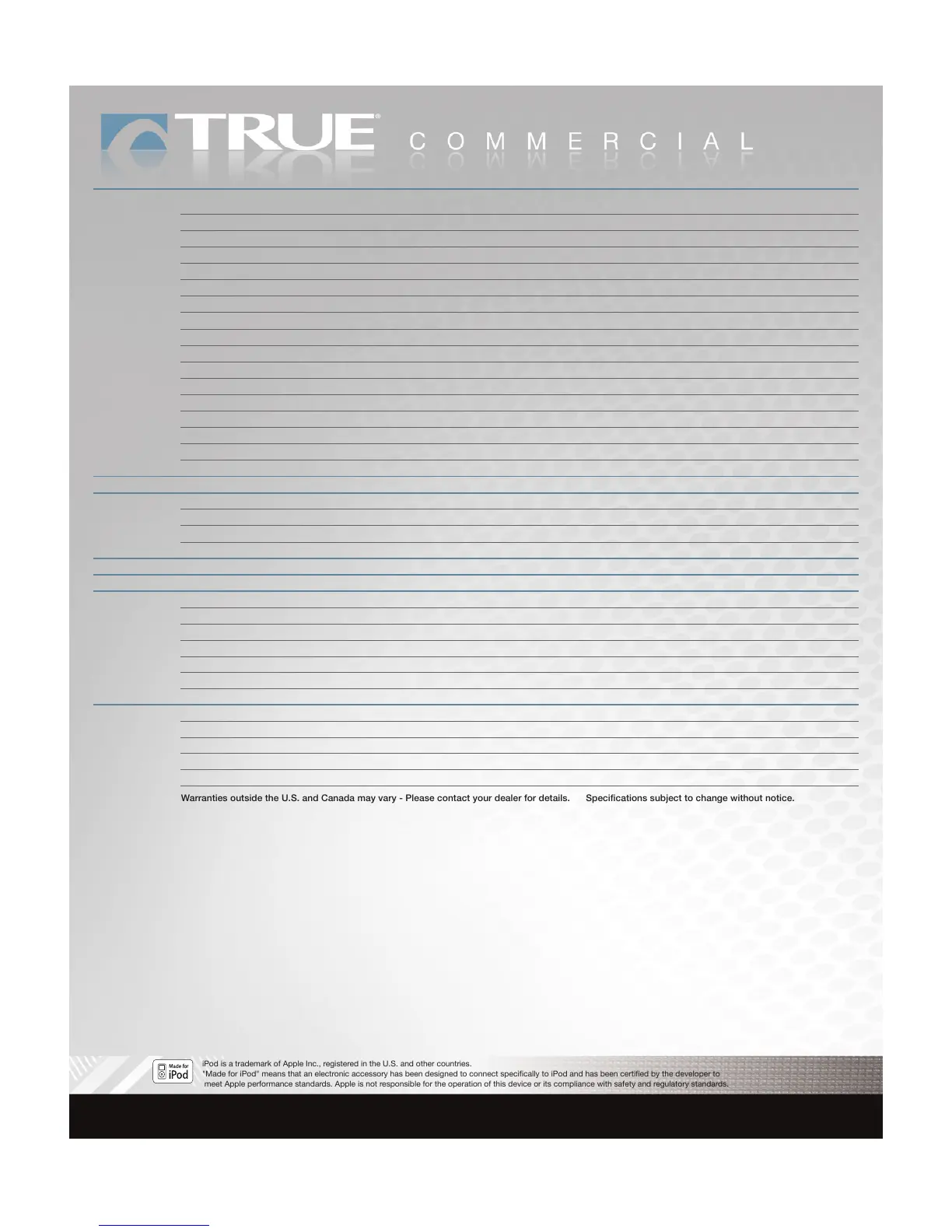 Warranties outside the U.S. and Canada may vary - Please contact your dealer for details. Specifications subject to change without notice.