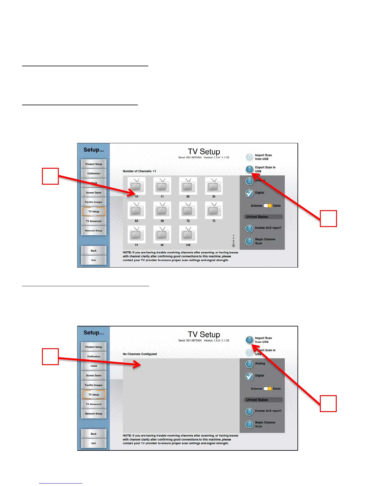 • When all desired channels are listed in the Channel List (A), touch the Export Scan to USB Button (B)