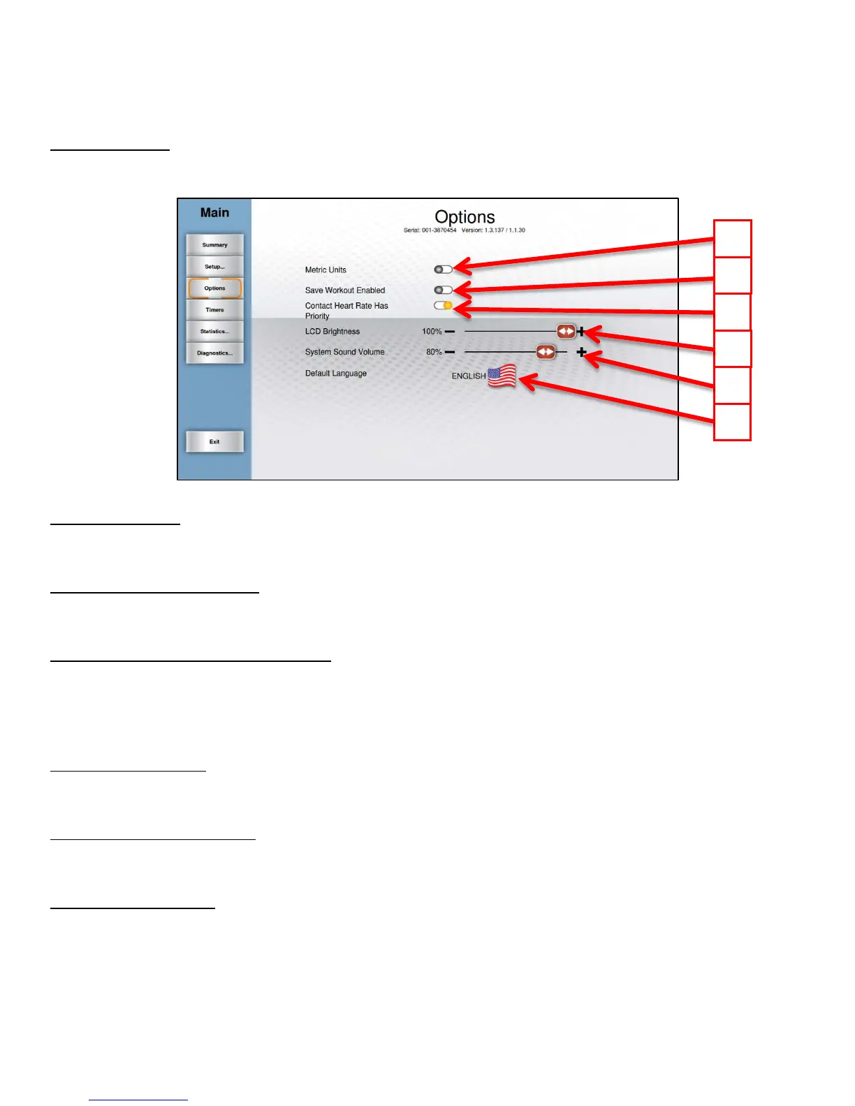 The Options menu allows users to customize settings on the console to meet their needs. The settings in this menu save