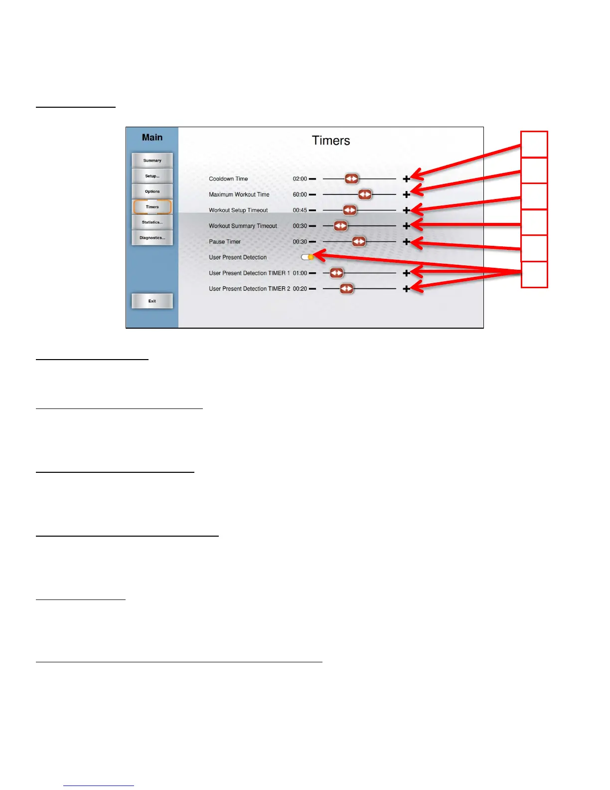 indicative of the weight of the user on the treadbelt. Timer 1 will set the amount of time before the console displays a User
