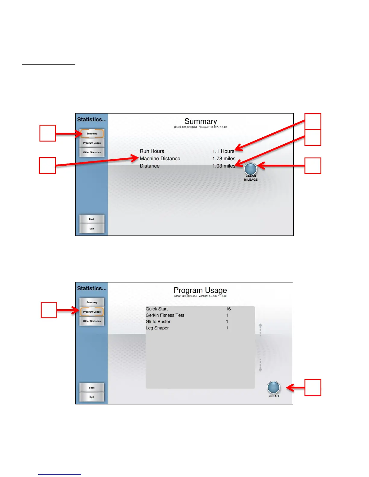 times those programs have been used. These statistics can be reset by touching the Clear button (G), but it is not