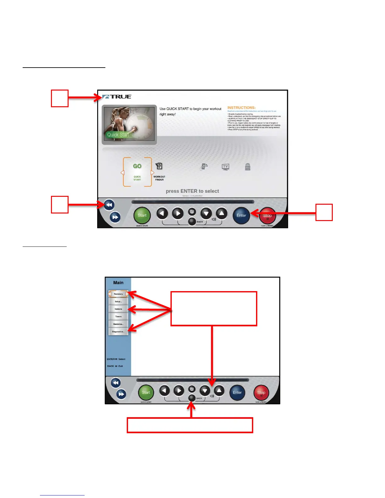 Entering Service Mode can be completed by pressing and holding the Back navigation Button (A). When the TRUE Logo