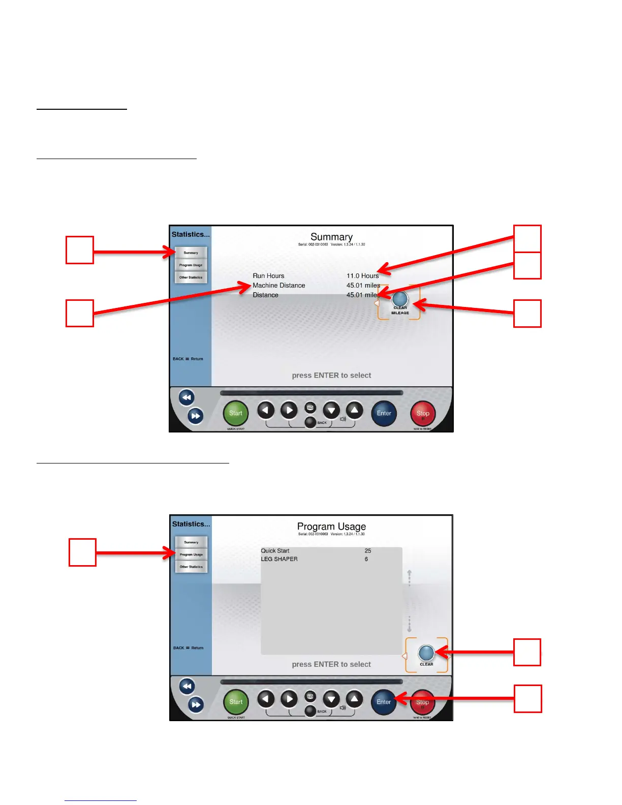times those programs have been used. These statistics can be reset by highlighting the Clear button (B) and Pressing Enter