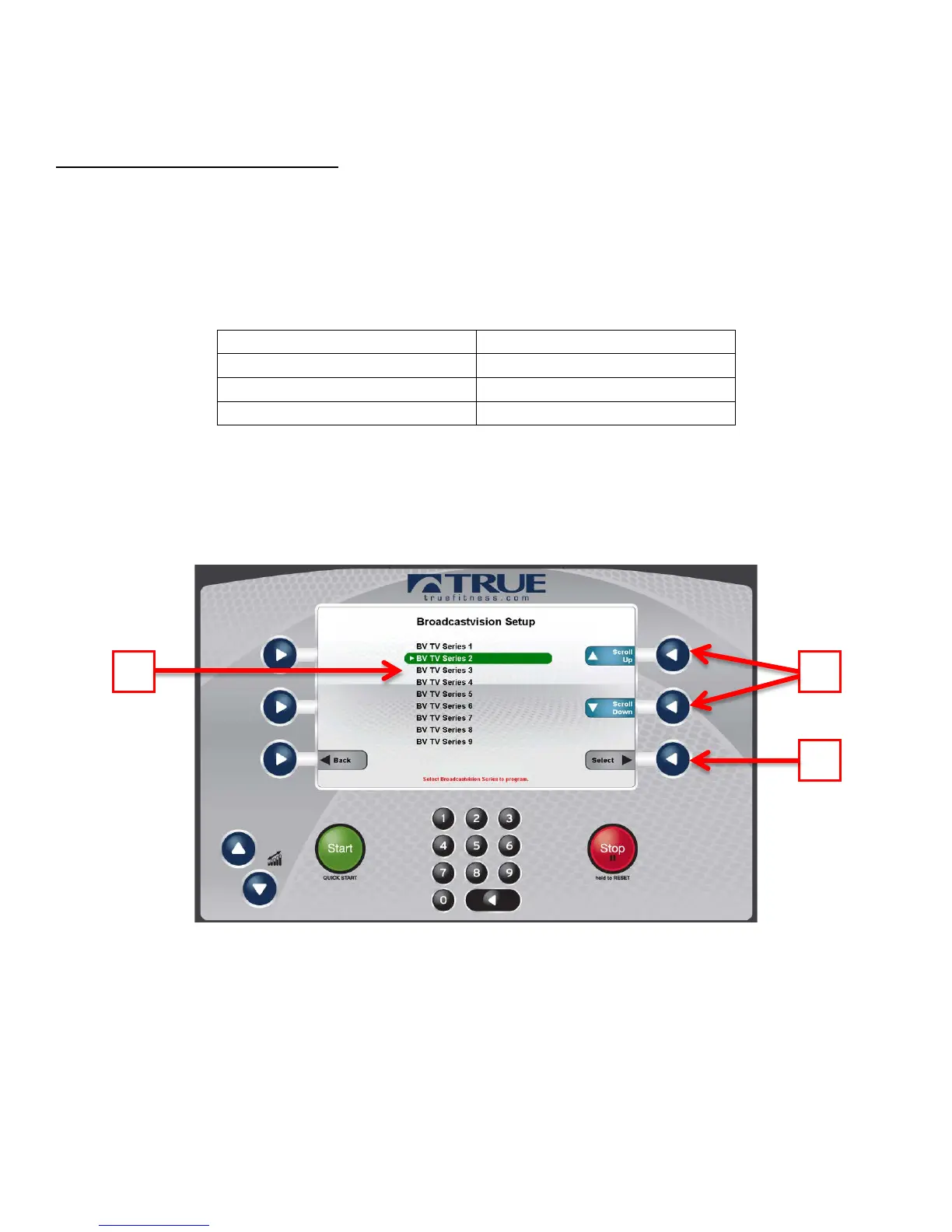 1. Use the Scroll Selection Buttons (A) to highlight the desired transmitter series from the list (BV TV SERIES 1-9) (B).