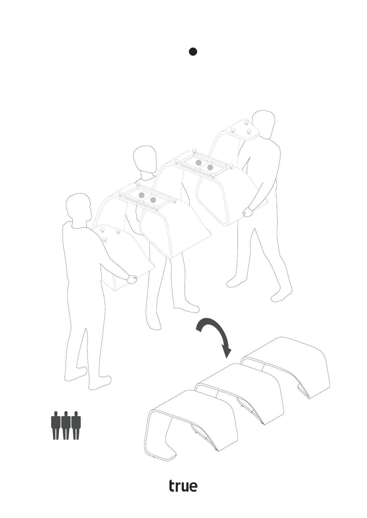 Flip the bench down to a minimum of three people and place it in the final destination location.