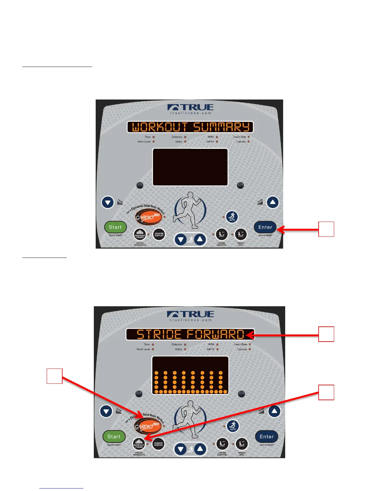 Once a workout has ended the console will display a workout Summary which will give the user an overview of