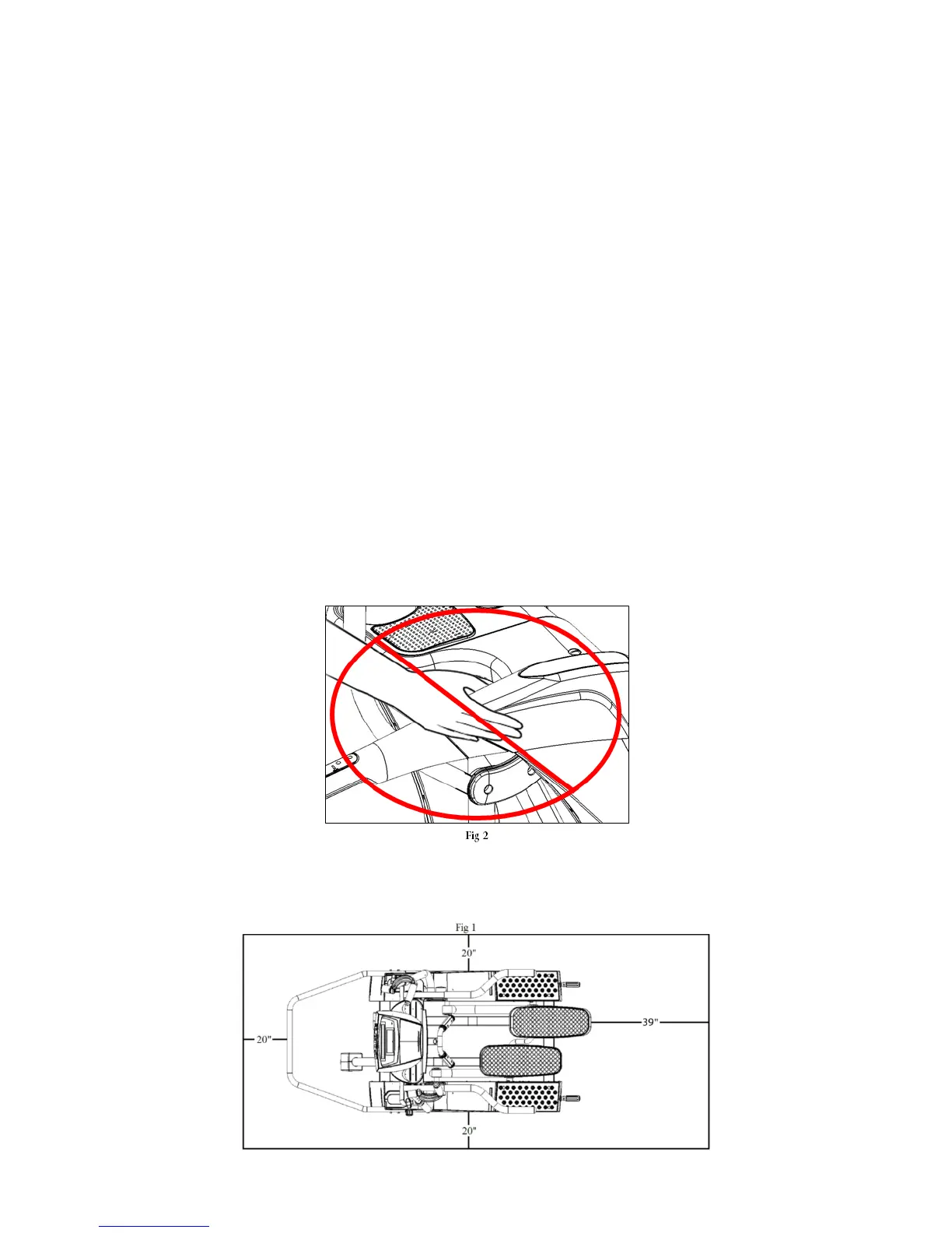 • Avoid placing hands on the upper side rail covers while elliptical is in operation. (See Fig 2)