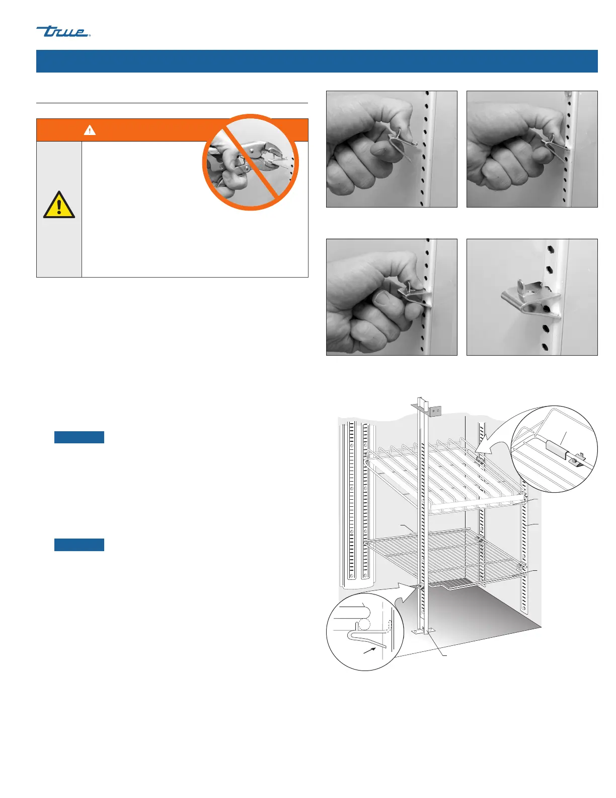 installing shelf clips. Altering shelf clips in any way can