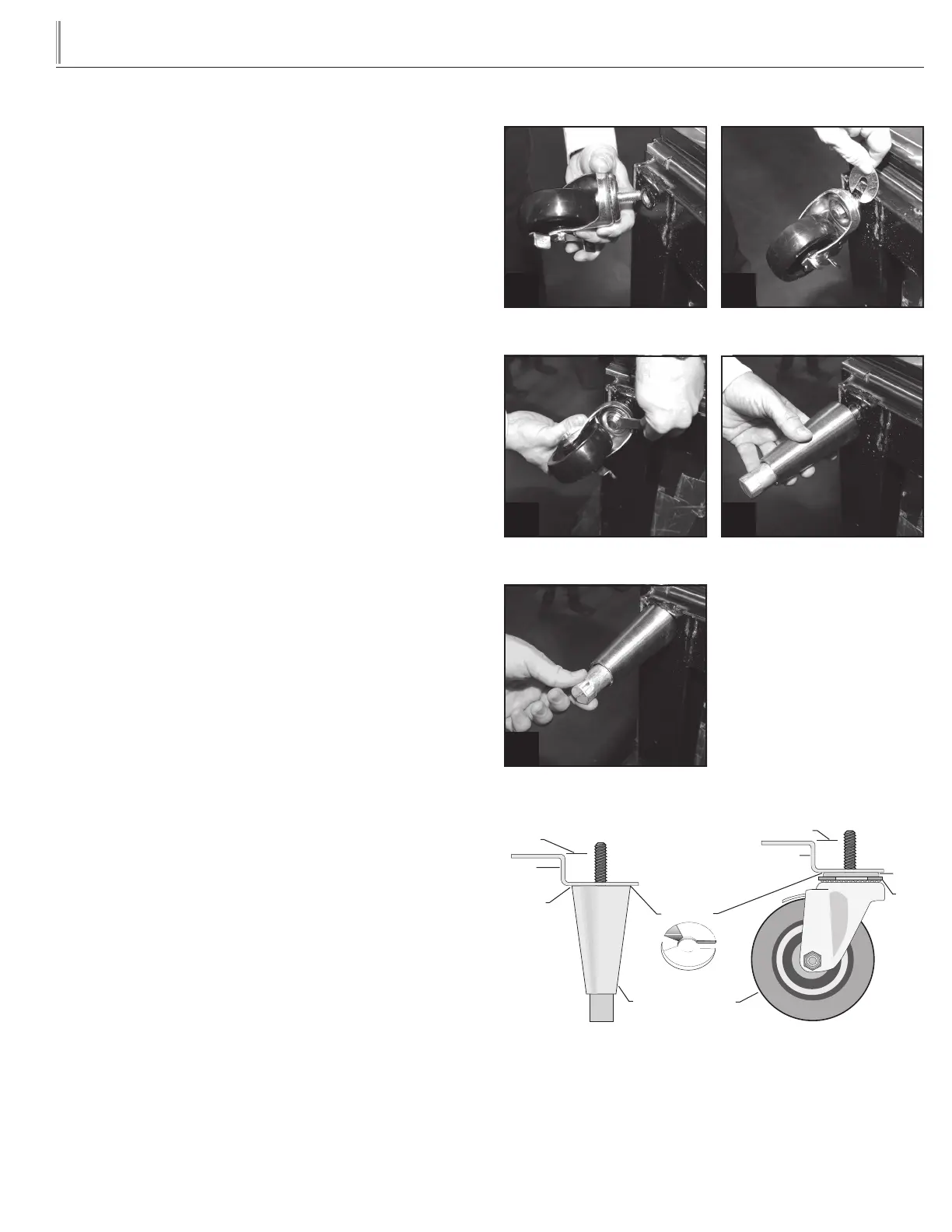 Important Safeguard for installation of leg/castor. Images 1-5 demon-