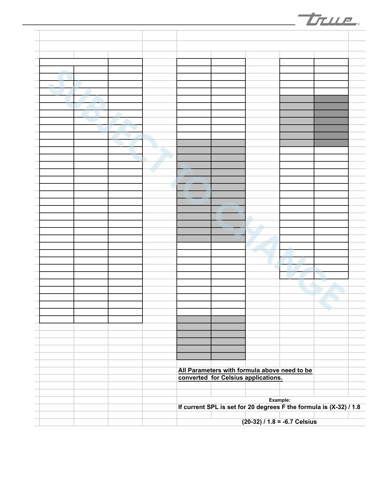 If current SPL is set for 20 degrees F the formula is (X-32) / 1.8