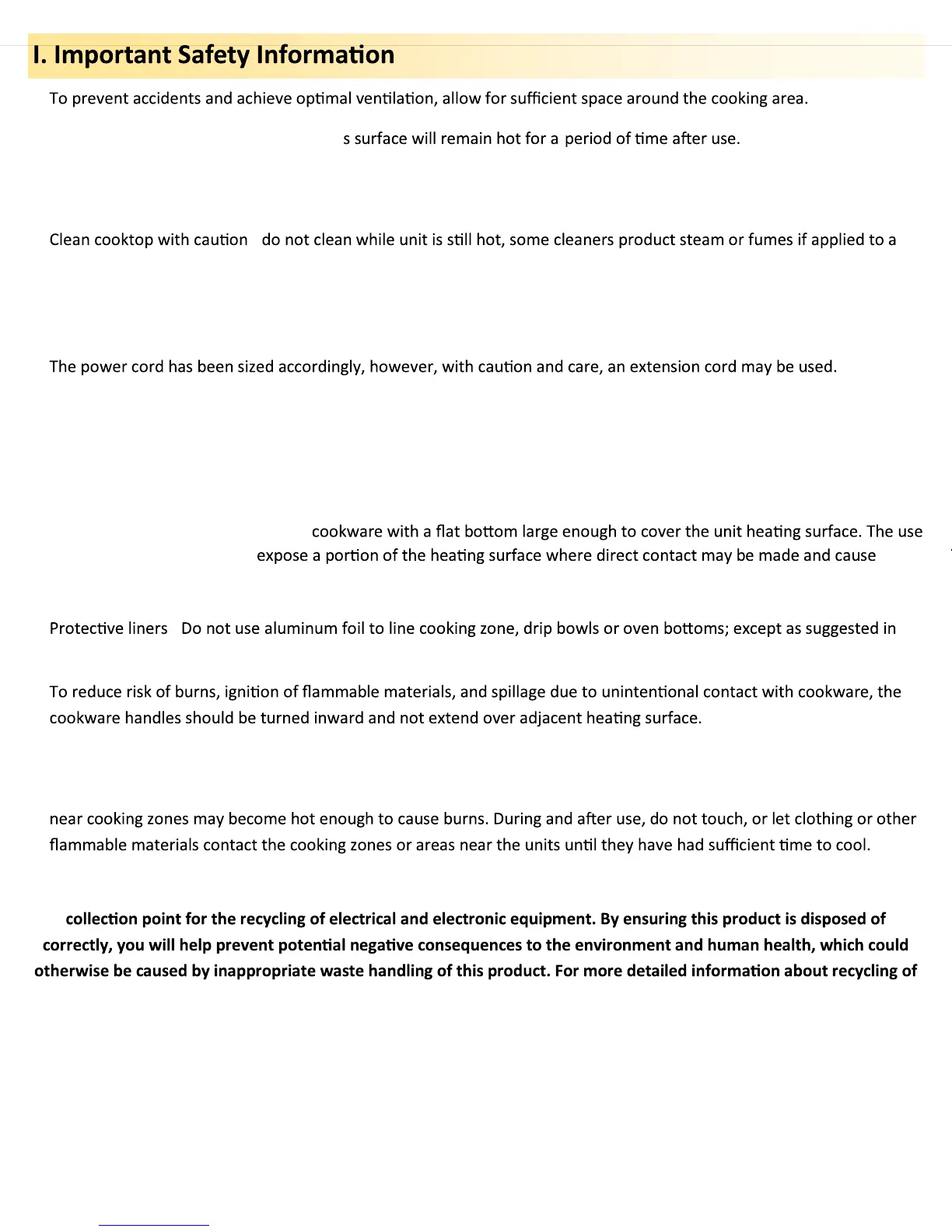 • Do not touch cooking zones or areas near units - Cooking zones may be hot even though they are dark in color. Areas