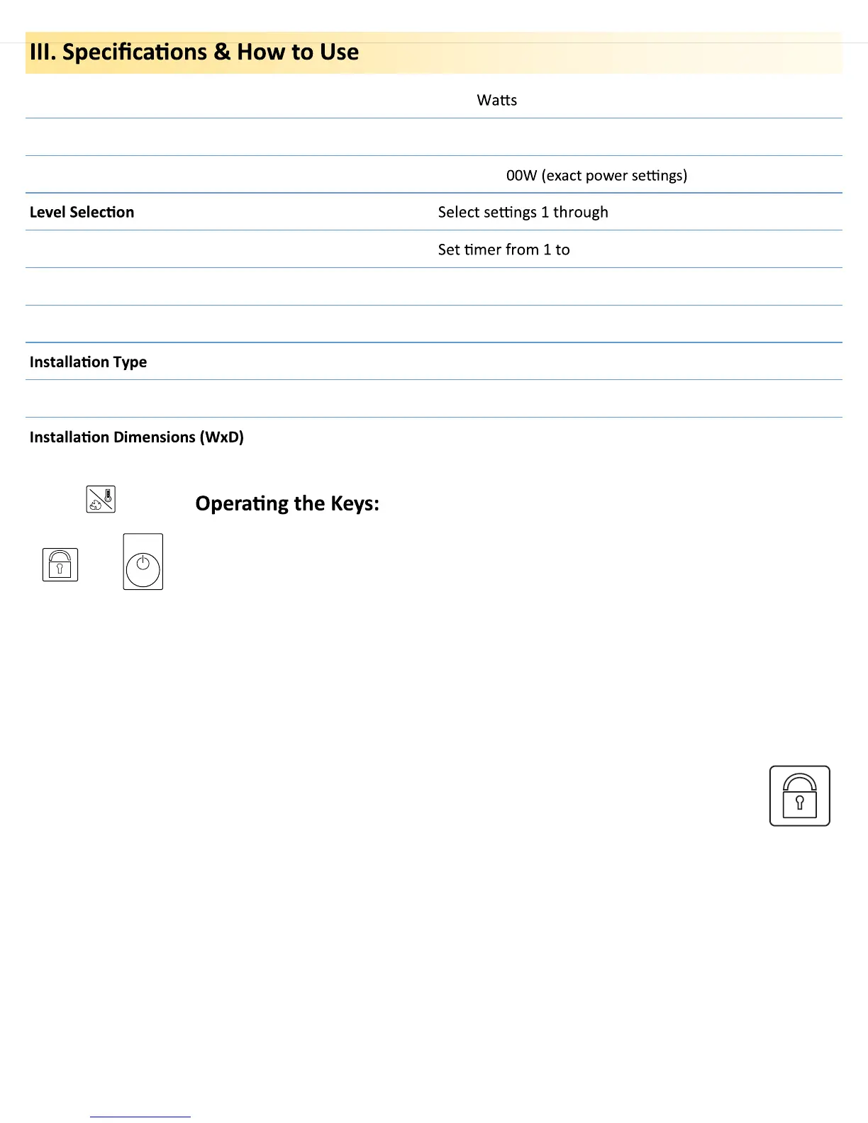 B. Automac: The inducon cooktop will automacally enter into Lock mode when the power is turned off.
