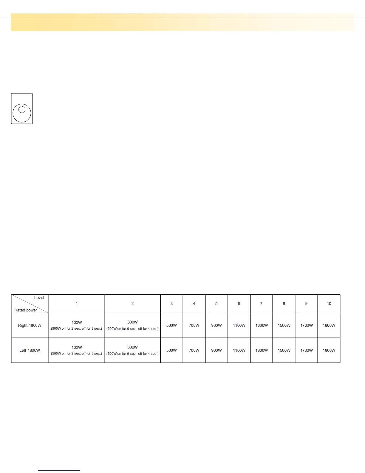 automacally, please refer to the Set Timer method. To stop cooking, please press “Power” key. Heang power level