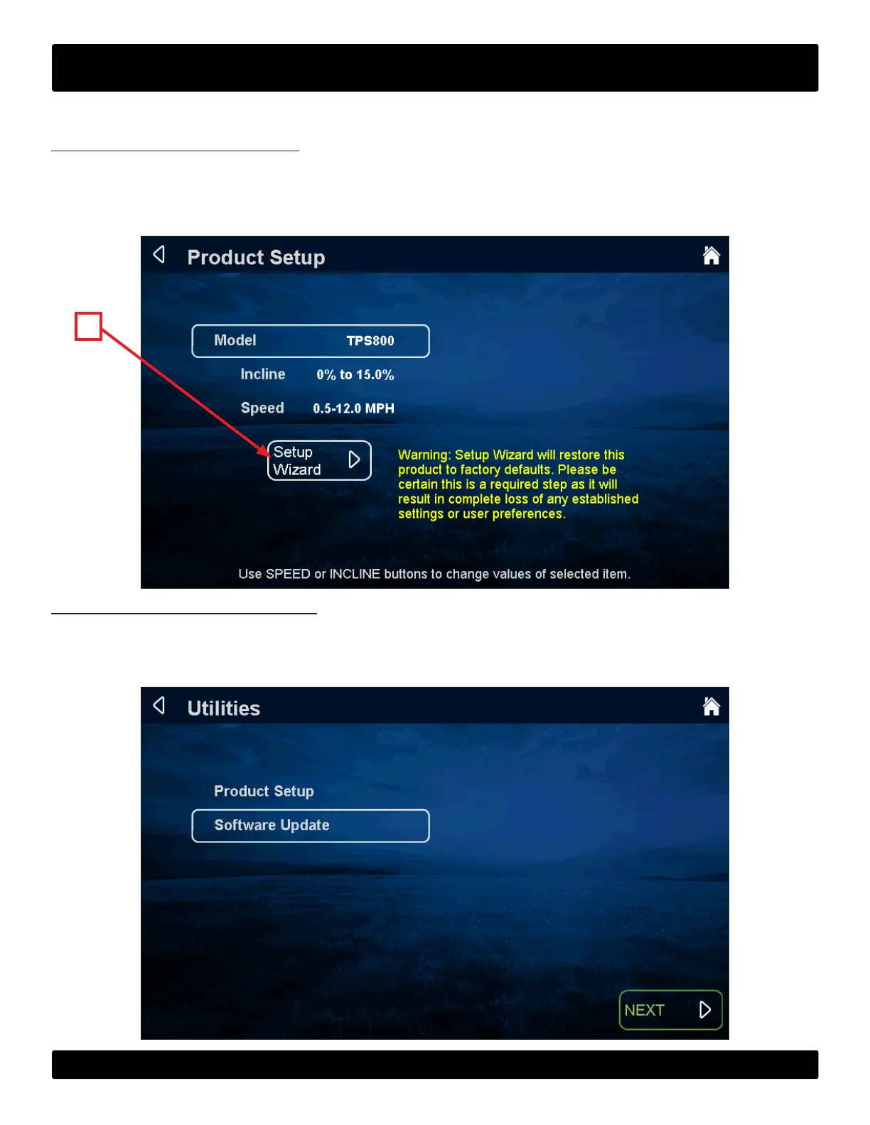 Utilities Menu - Product Setup: