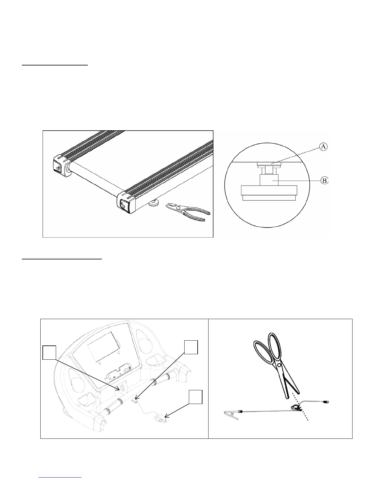 c) Using a level or estimating by sight, turn section (B) of foot counter-clockwise to a proper height.