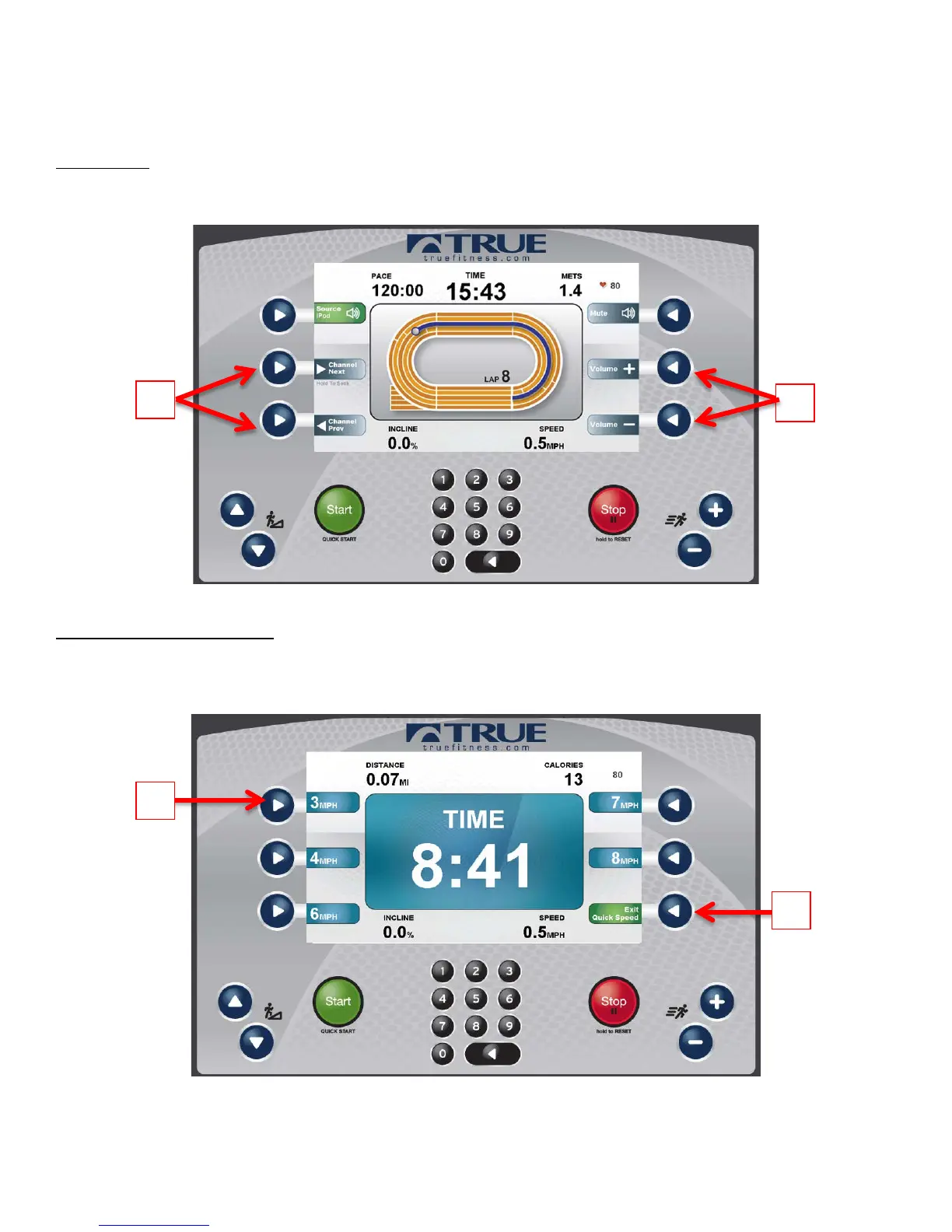 Selection Buttons (A) will allow the user to quickly and conveniently switch to that preset speed. To return to the Workout