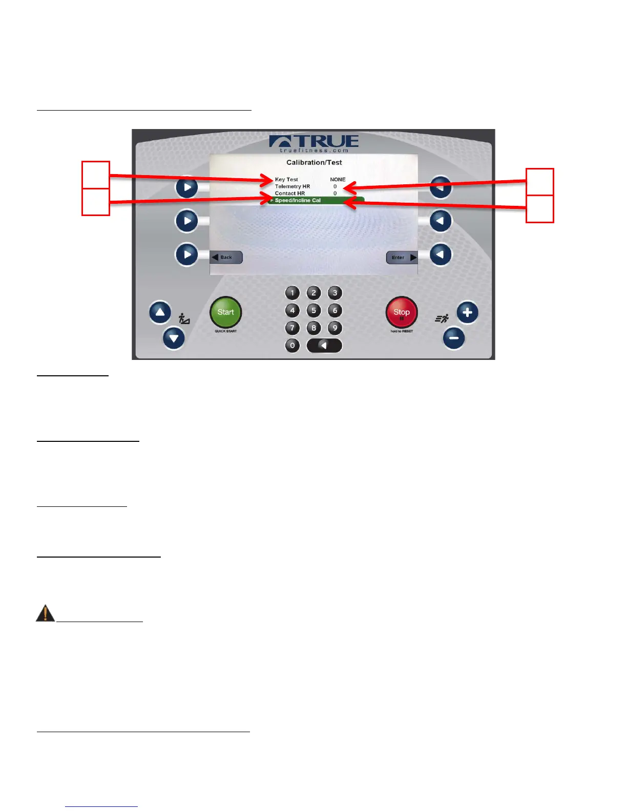 Speed/Incline Cal (calibration) is selected by default in this menu. To run a calibration press the enter selection button (E)