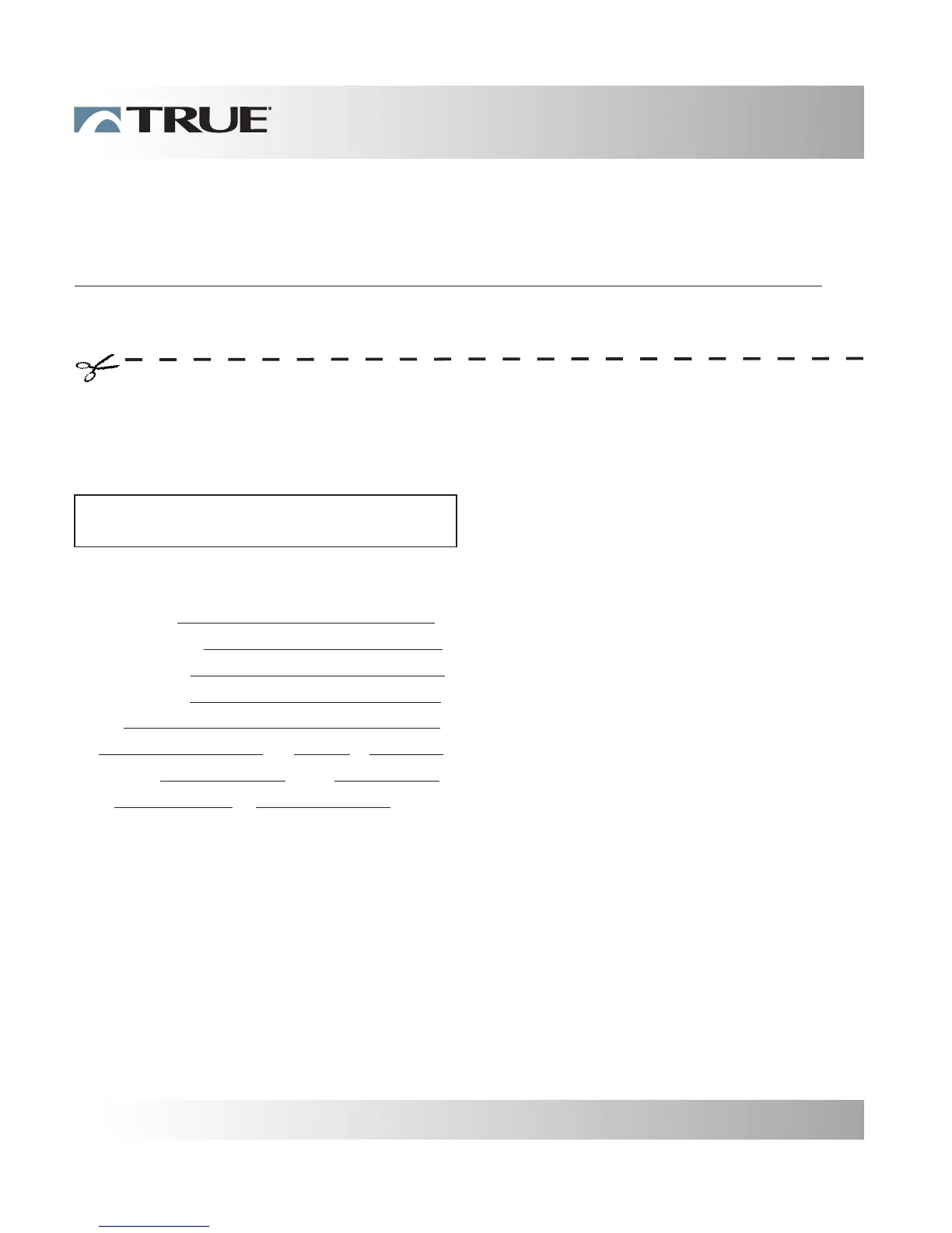 Thank you for purchasing a TRUE product. To validate the TRUE product warranty the fast and easy way, please go on-line