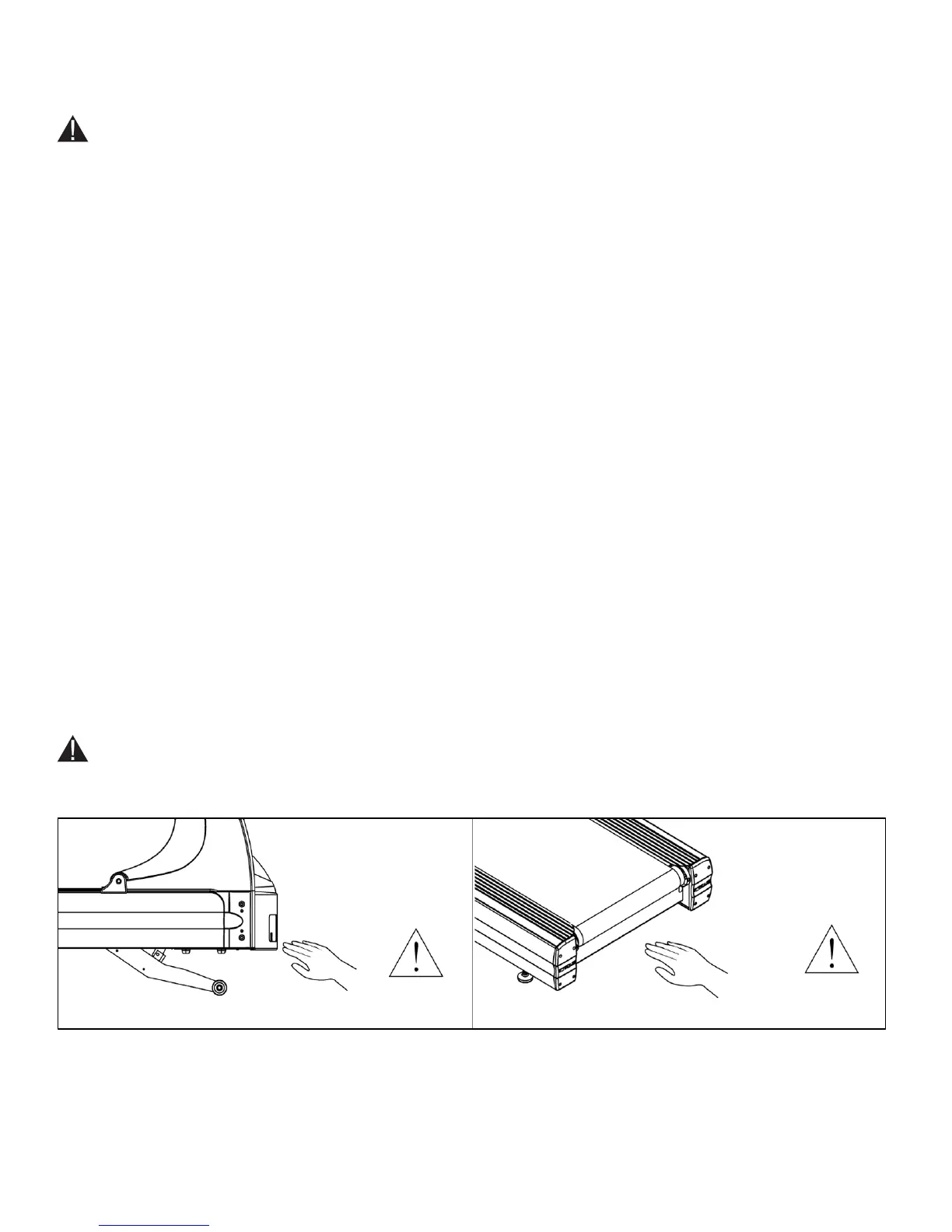 • To avoid serious injury, do not touch the belt while the treadmill is in use.