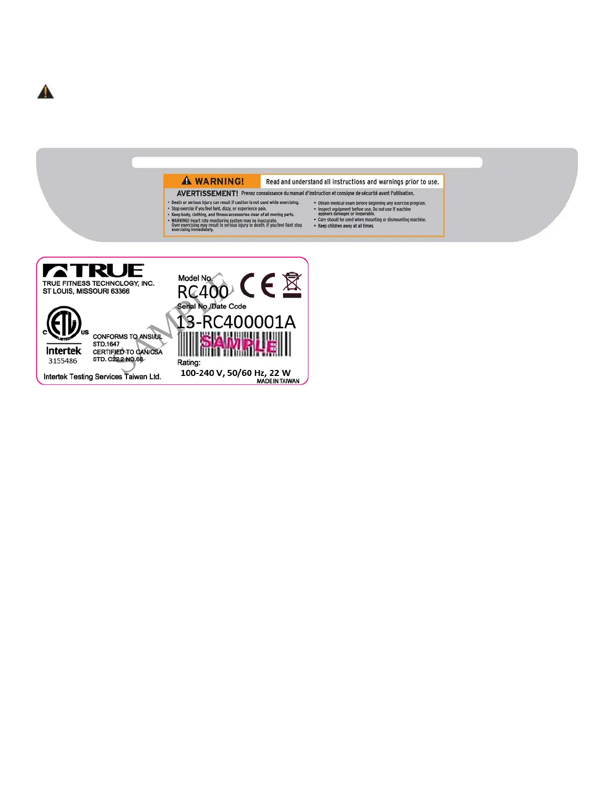 To replace any worn or missing warning decals contact TRUE FITNESS by one of the following: www.truefitness.com or