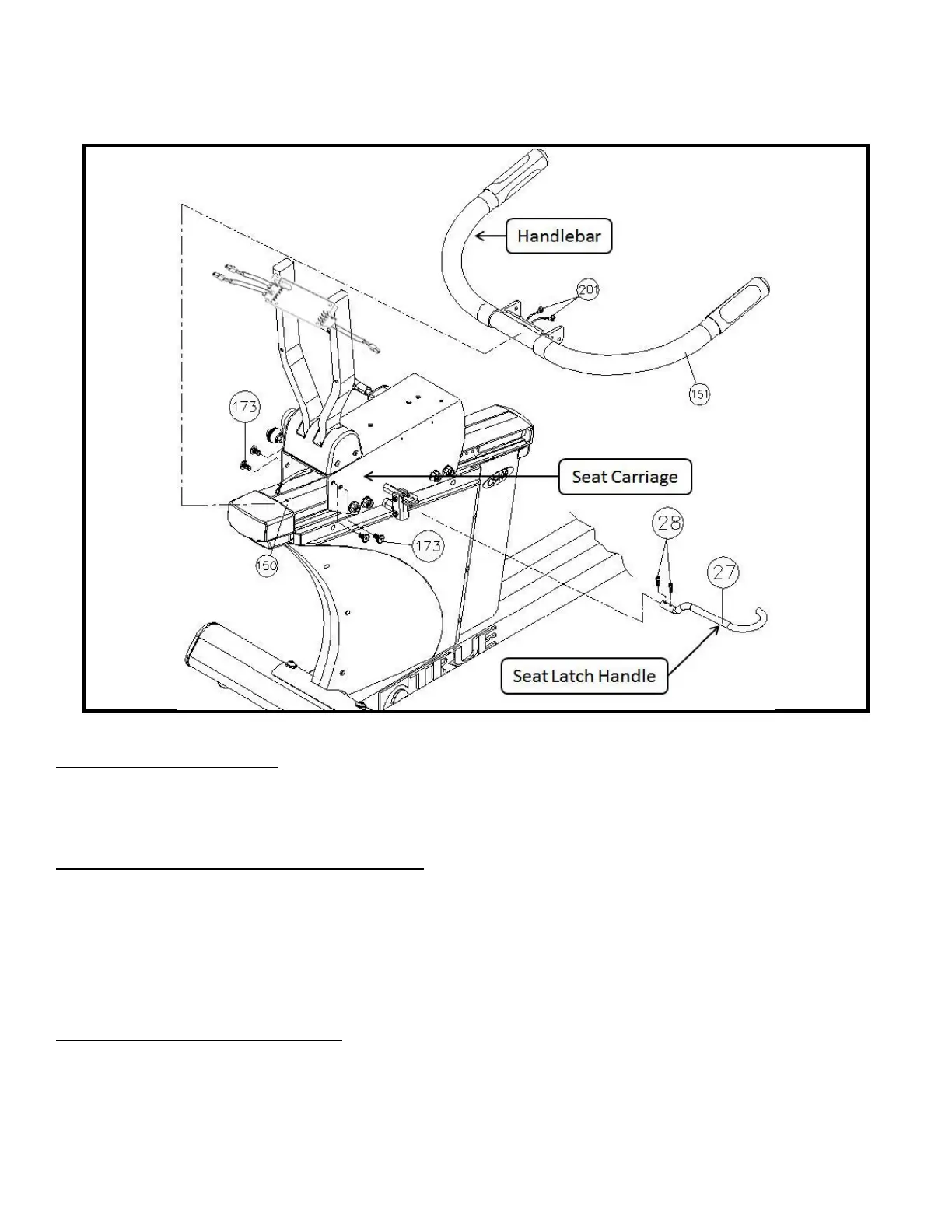 • Insert screws (#173, quantity 4) through the Seat Carriage, into the Handlebar bracket