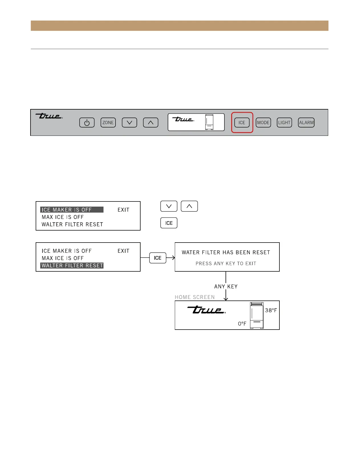 • Water Filter Reset: Immediately resets the countdown to change the water filter