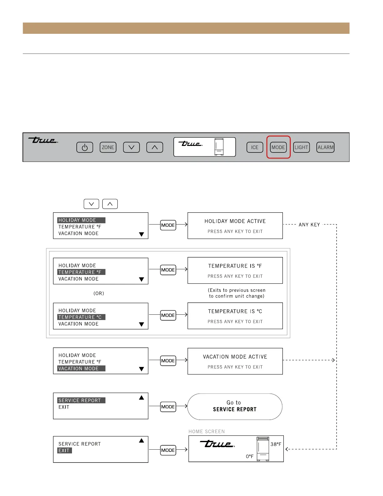 • Service Report: Cycles the display through any error notifications.