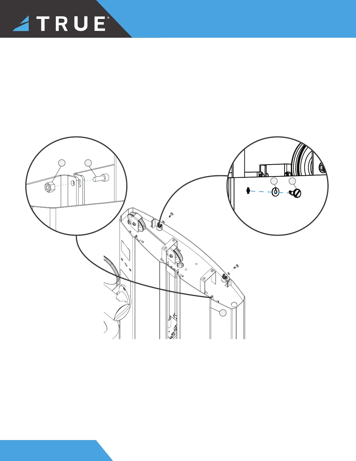 e. Using a fl at head screwdriver, secure the rear shroud to the upright assembly using the 2 twist lock screws and 2 lock