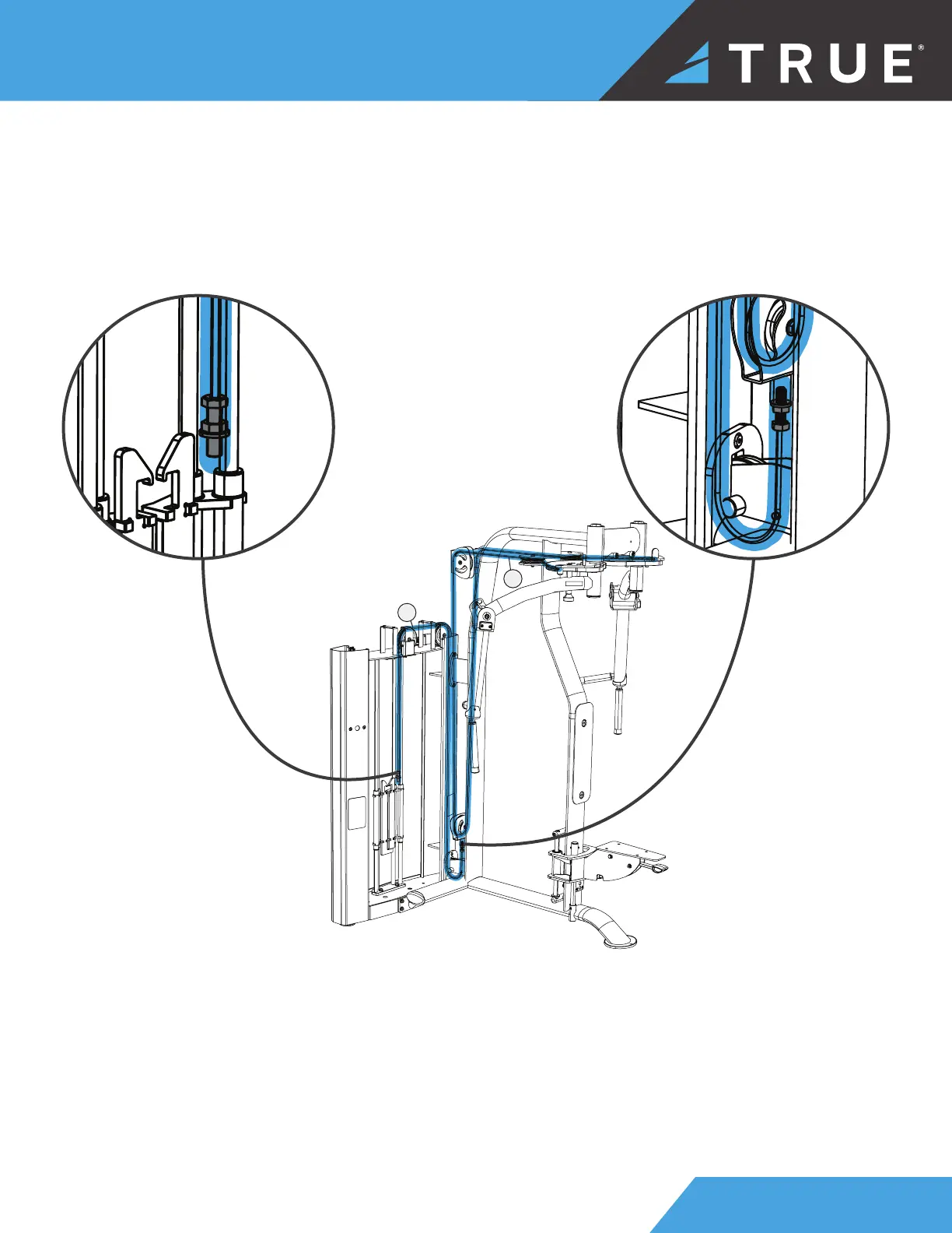 through the pulley cam. The left end of the upright cable goes to the weight stack side while the right end goes to the main