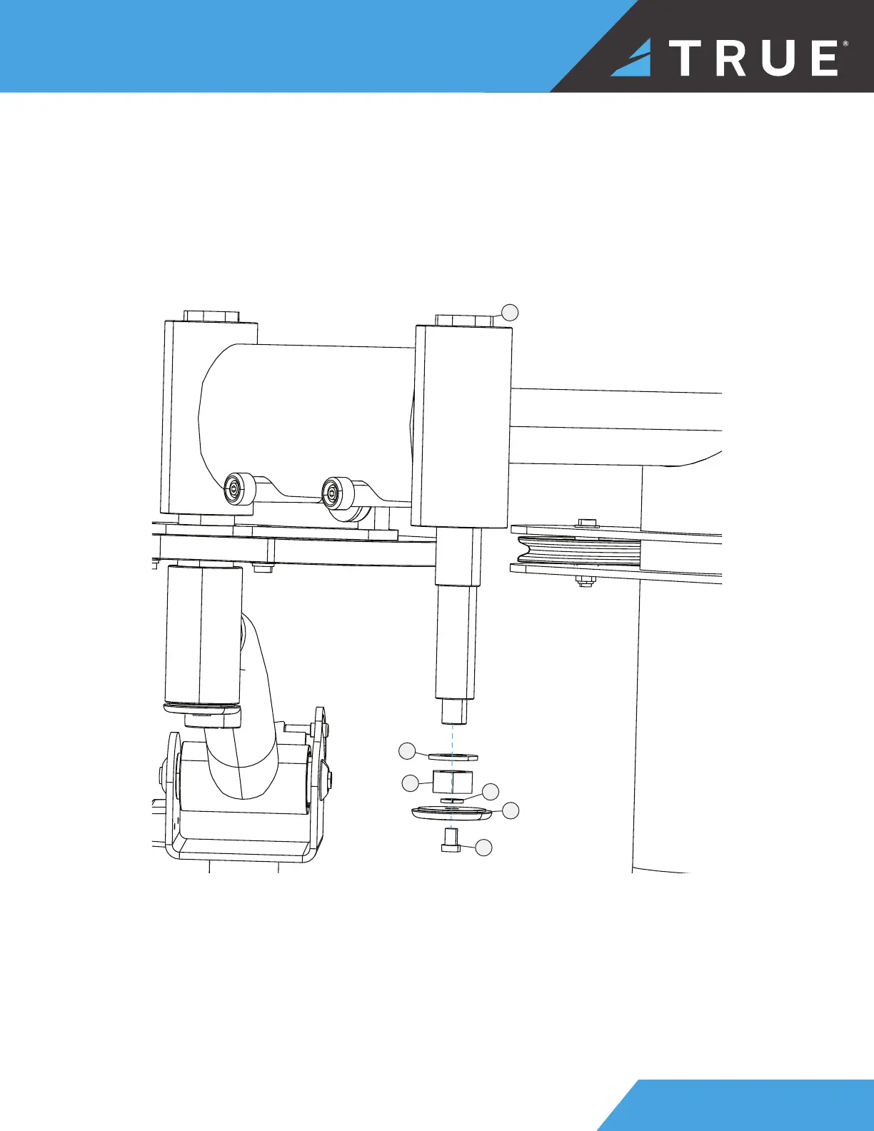 h. Using an allen wrench, remove and set aside the 1 cap, 1 hex screw, and 1 lock washer from the main frame