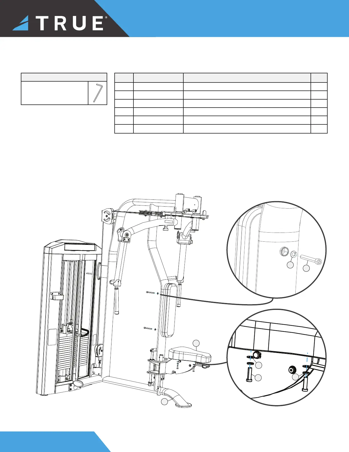 a. Using an allen wrench, attach the back pad to the main frame assembly using 2 hex screws and 2 lock washers.