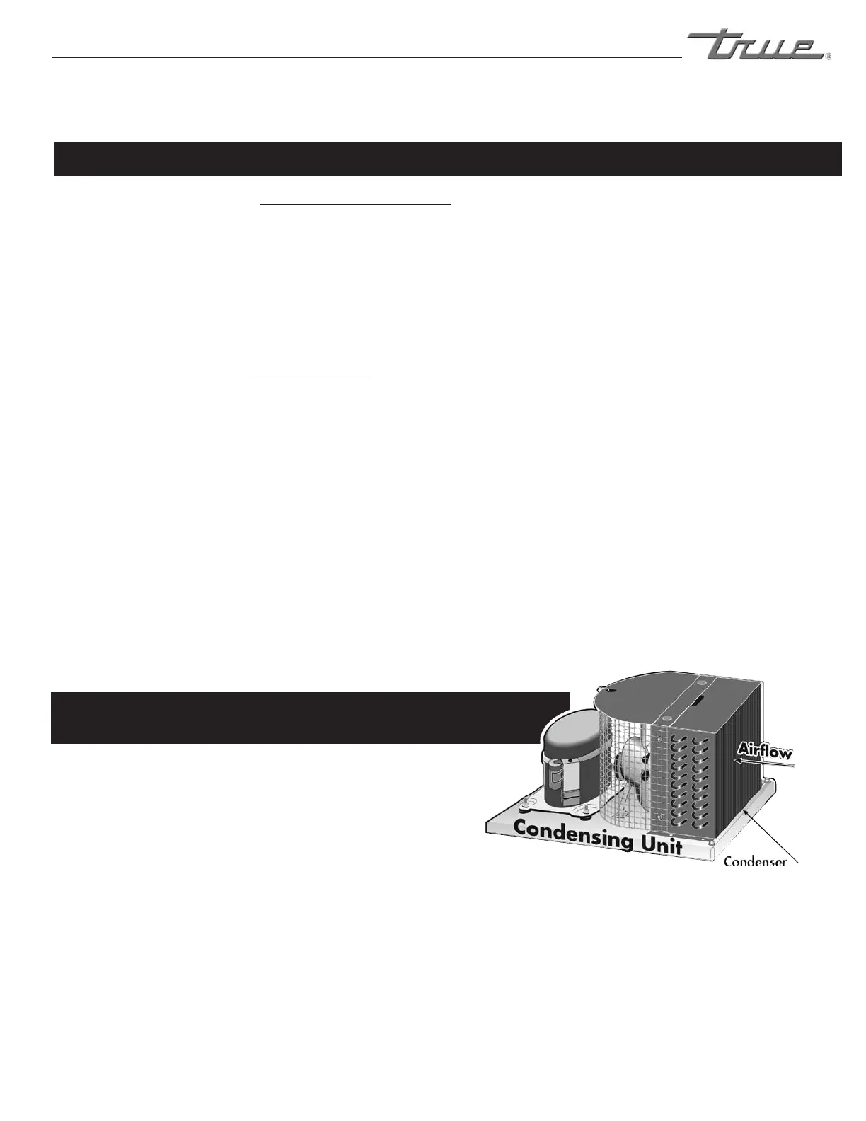 Condensers accumulate dirt and require cleaning every 30 days. Dirty condensers result in compressor failure, product loss,