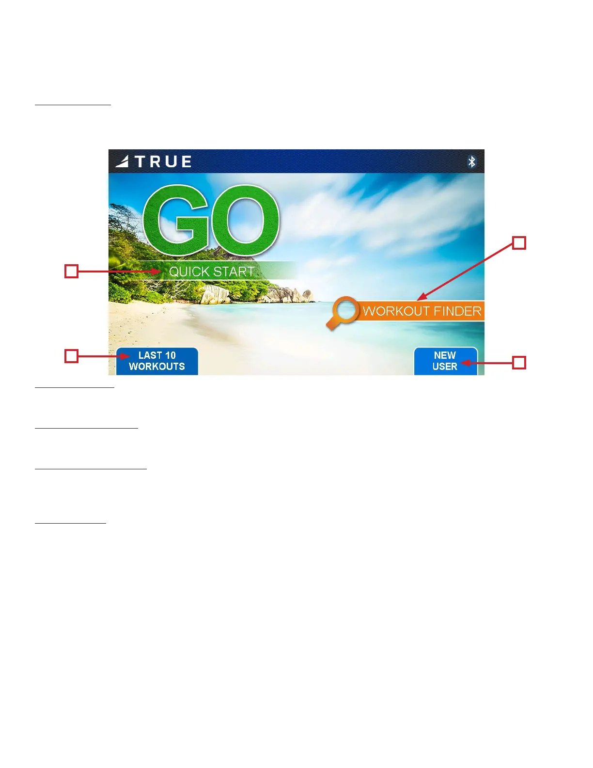 e Home Screen is displayed on the console when there is no workout in progress. From this screen the user is able to