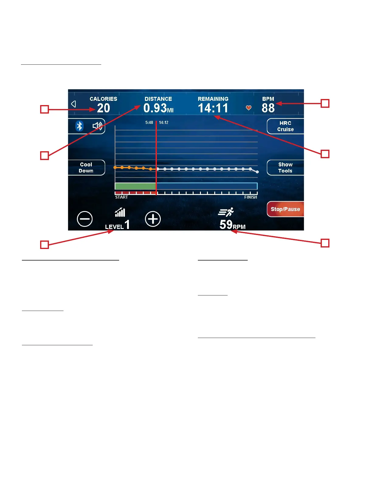 During any workout, a Workout Data Screen will be displayed to give the user a comprehensive visual overview of their