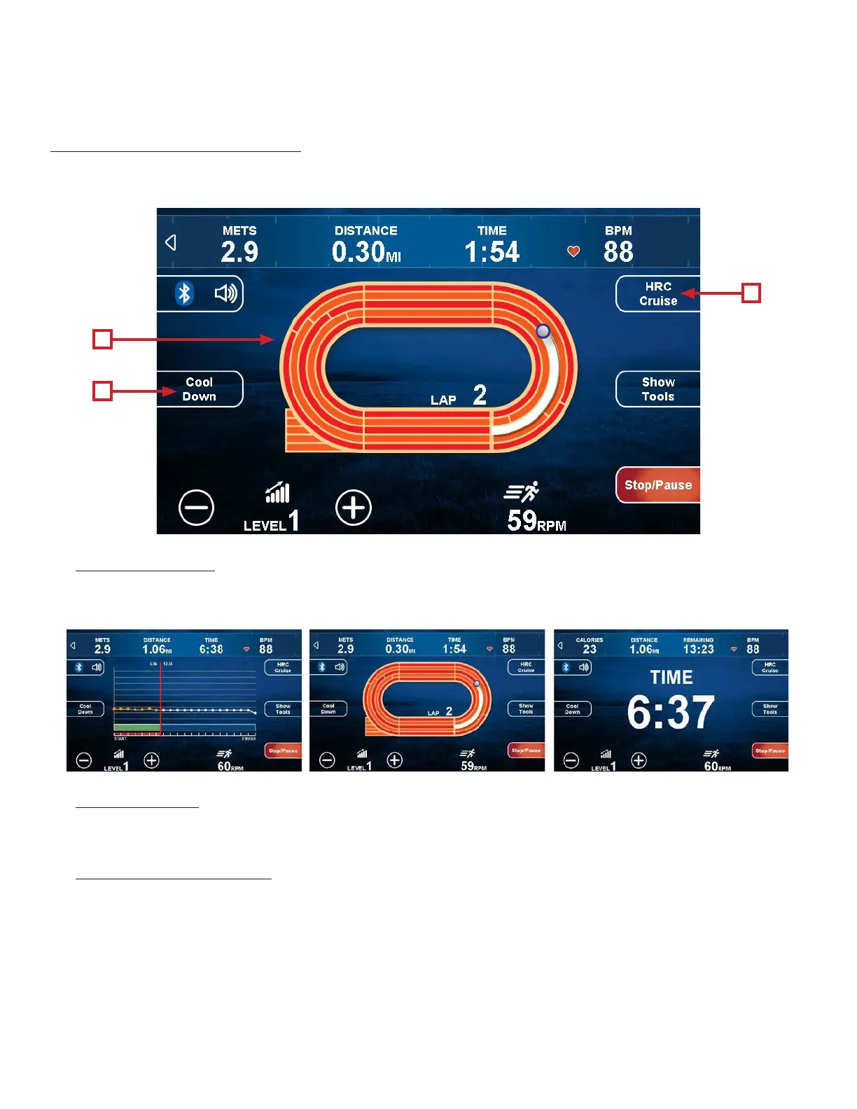 e Workout Data Screens contain various controls that allow users to adjust workout settings and to customize their
