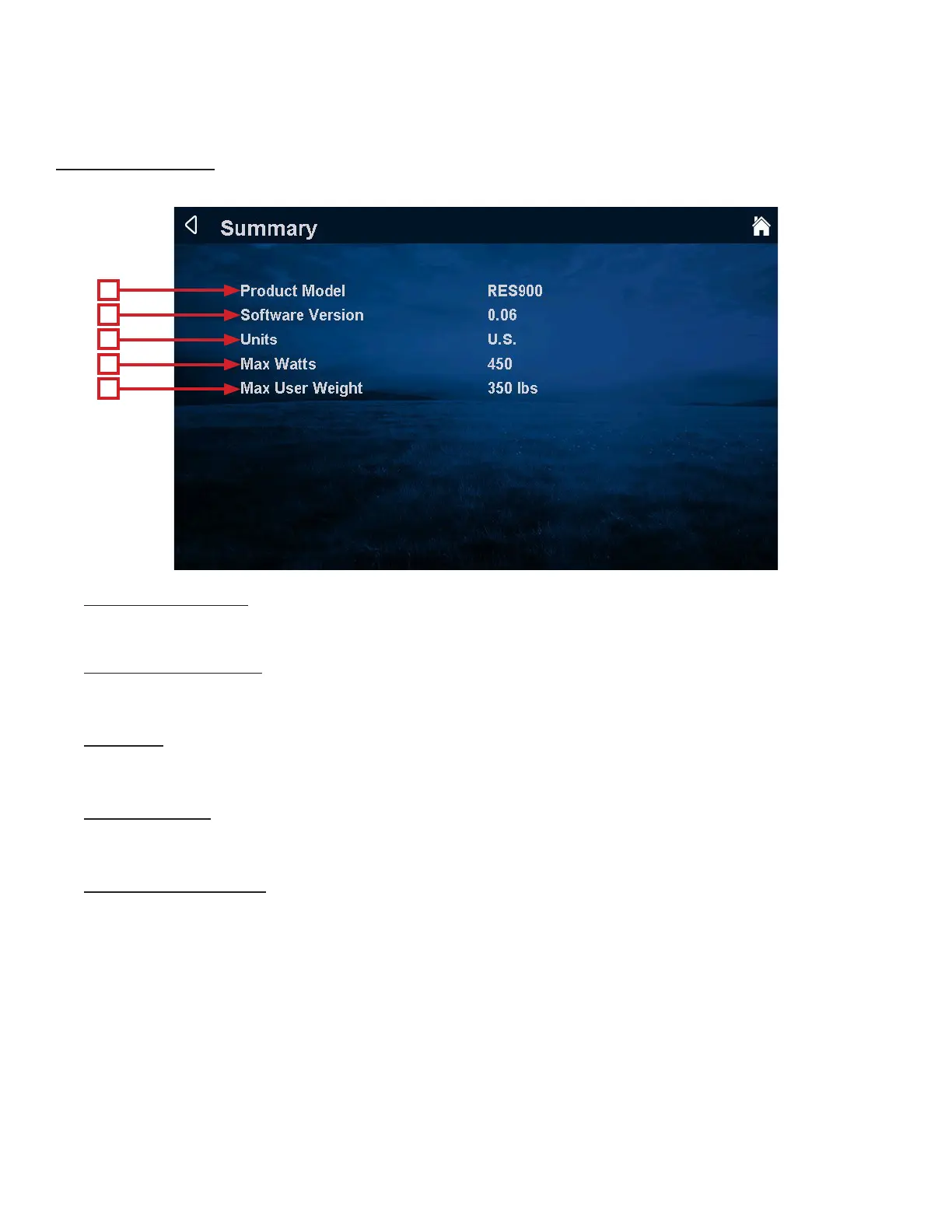 e Summary Screen provides an overview of the unit’s current settings (values cannot be changed in this screen).