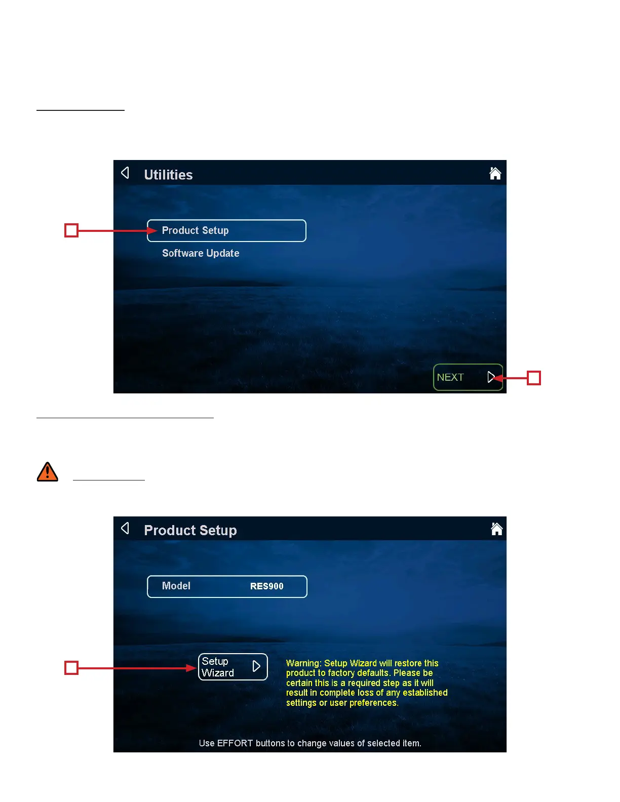 Utilities Menu - Product Setup: