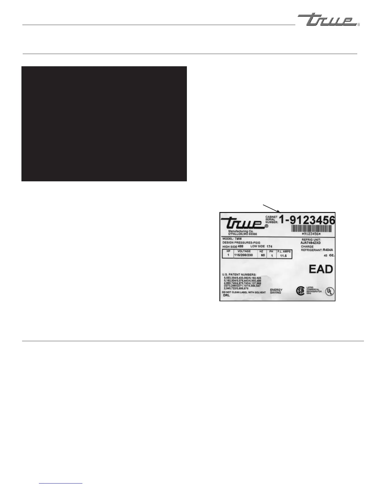 TRUE maintains a record of the cabinet serial number for your unit.
