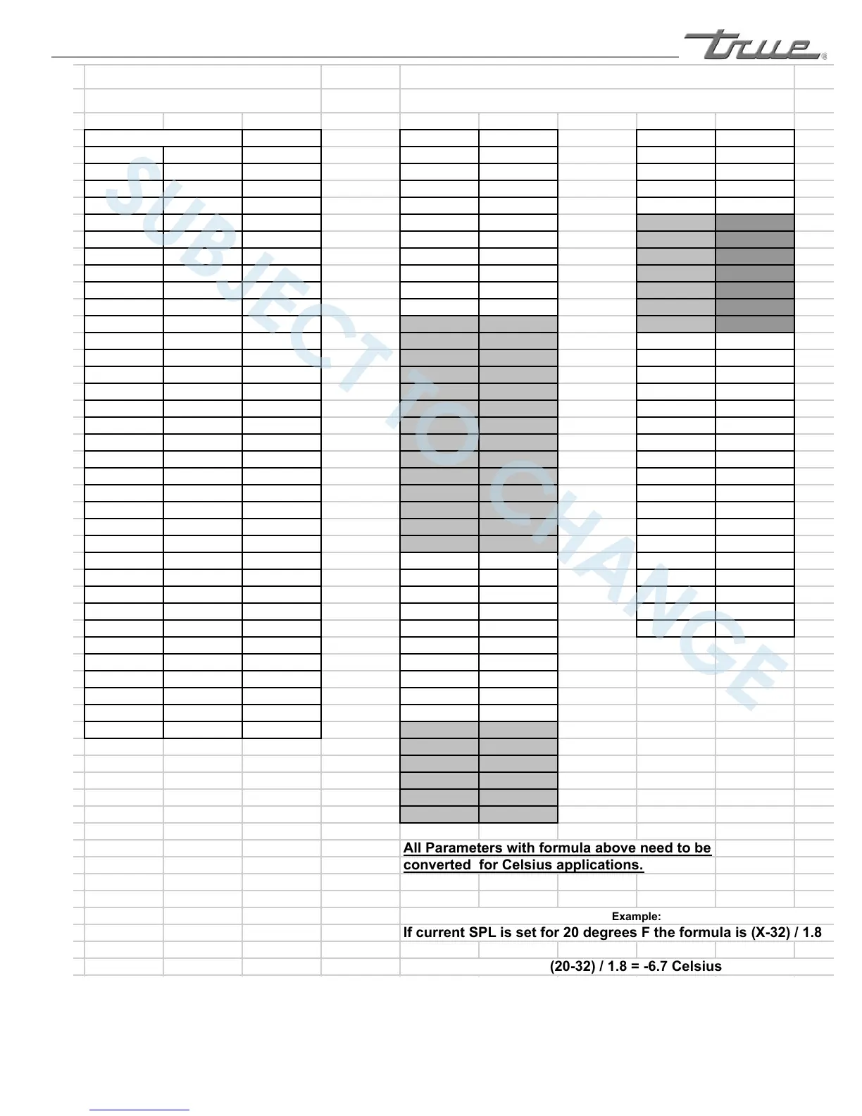 If current SPL is set for 20 degrees F the formula is (X-32) / 1.8