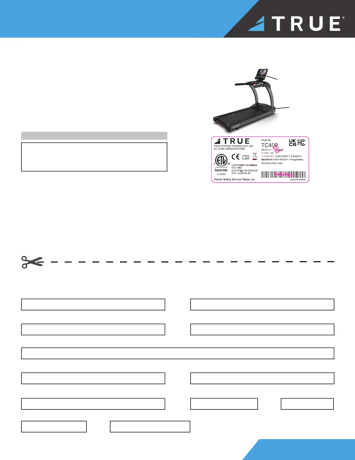 information below and return it to TRUE Fitness within 30 days from the date of equipment installation.