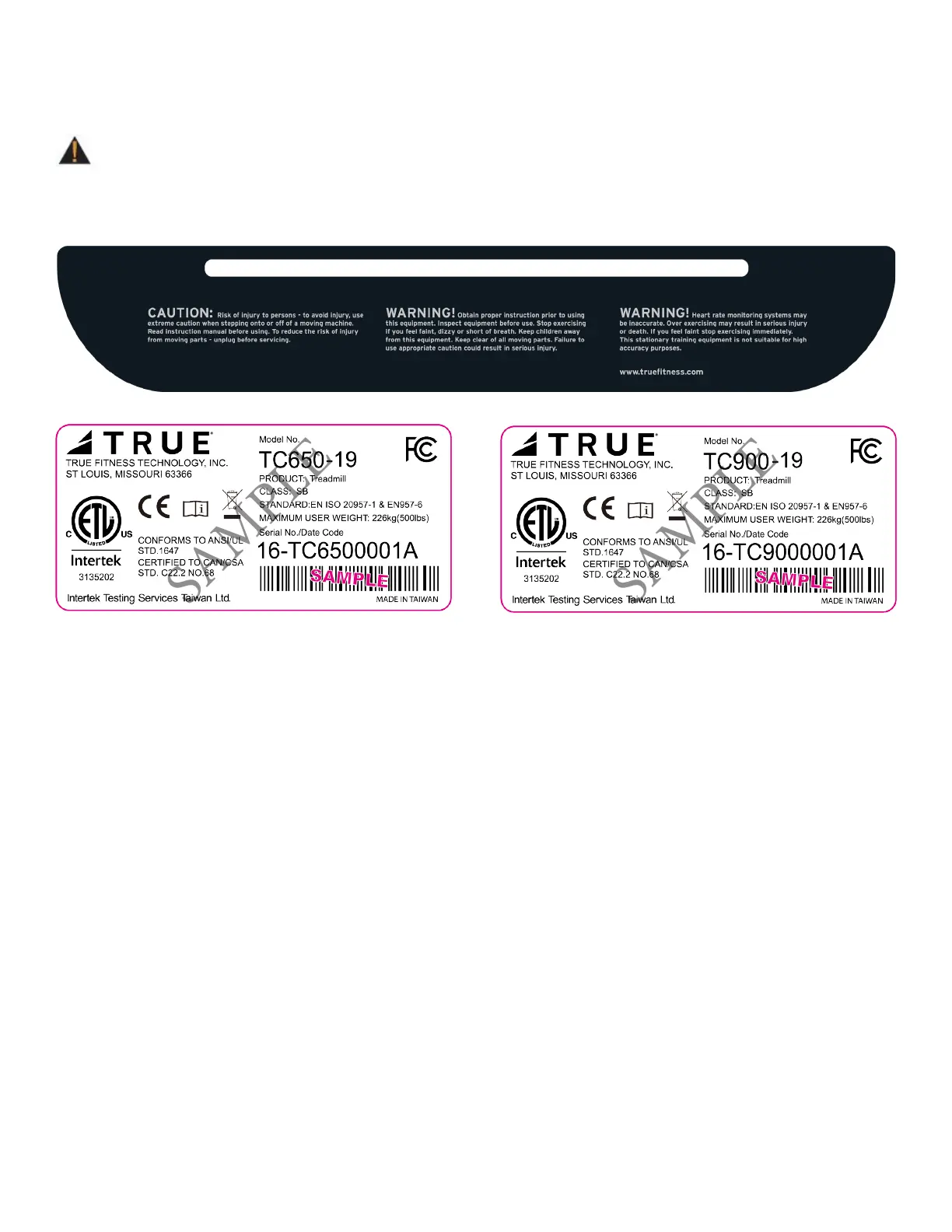 To replace any worn or missing decals contact TRUE FITNESS by visiting www.truetness.com or contact customer