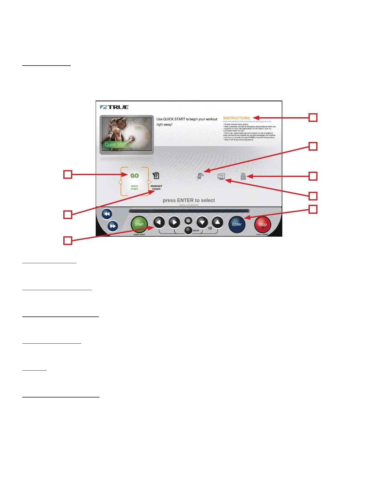 e Home Screen is displayed on the console when there is no workout in progress. From this screen the user is able to