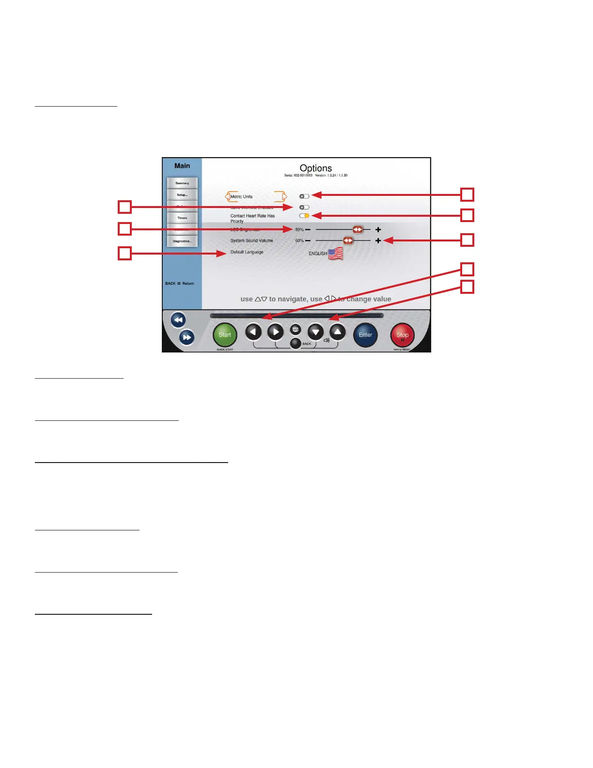 e Options menu allows users to customize settings on the console to meet their needs. Use the Up/Down Selection