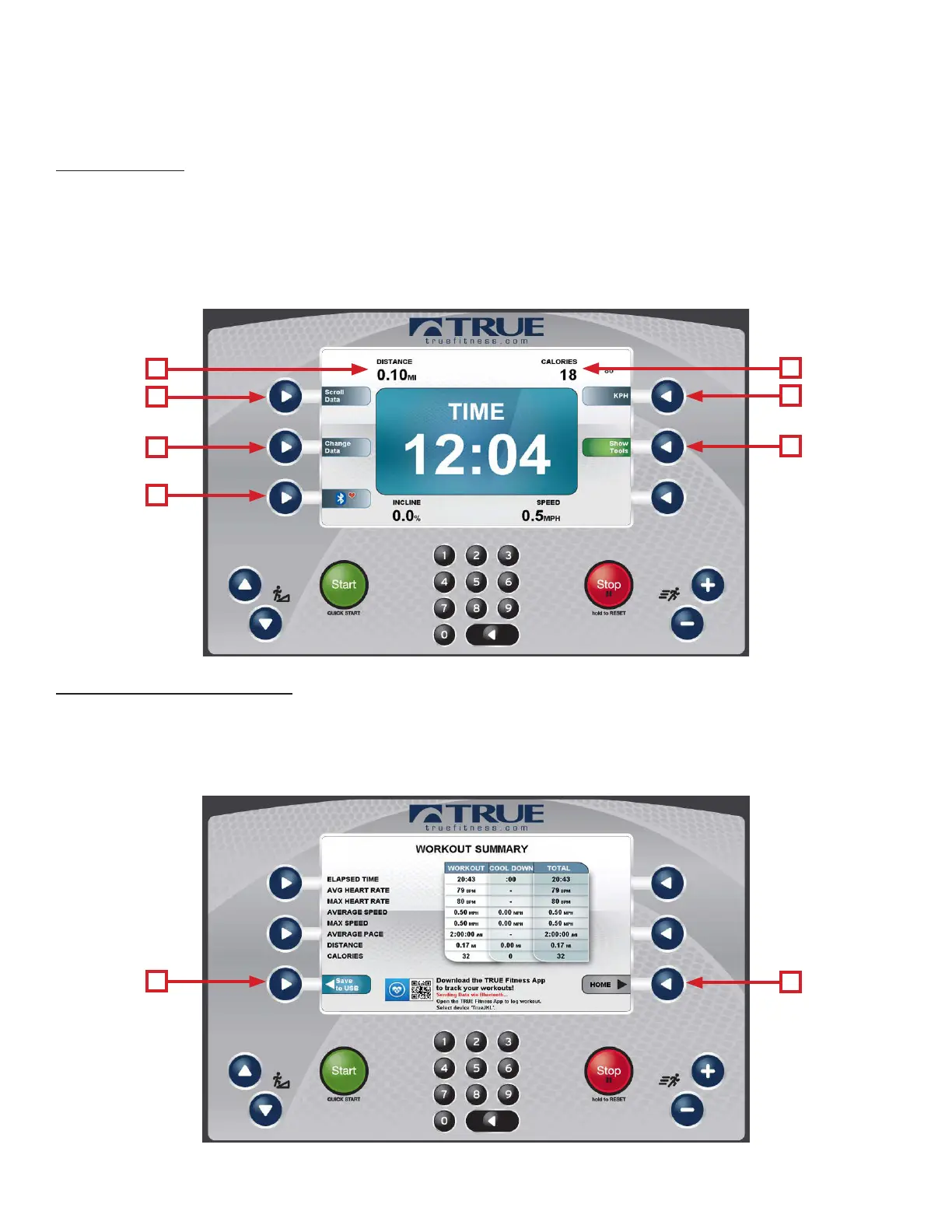 can be saved to the TRUE Fitness app via Bluetooth by following the instructions at the bottom of the screen. To return to