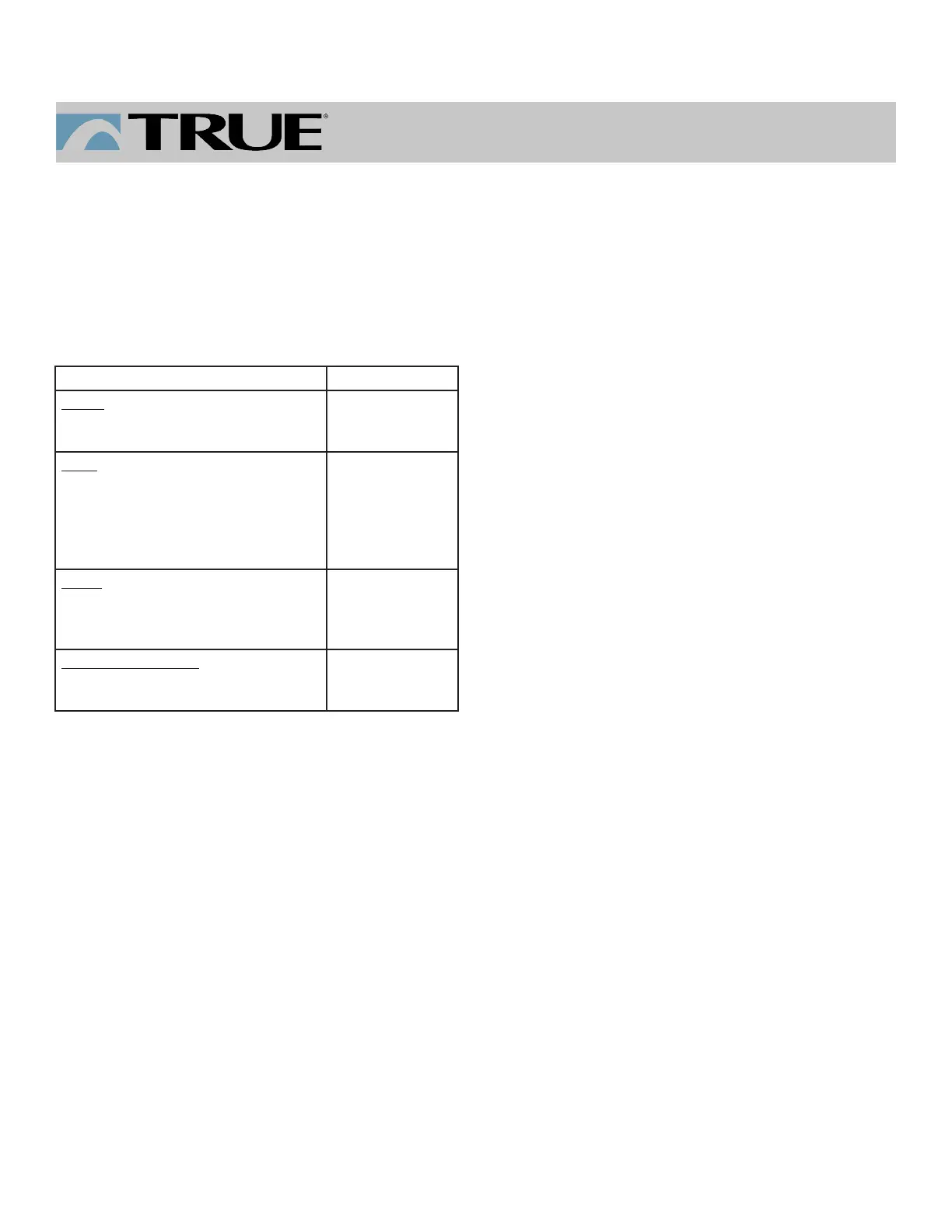 obtained by contacting the authorized TRUE dealer from